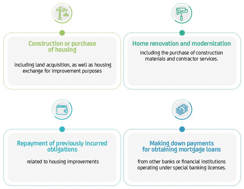 Otbasy Bank offers its depositors housing loans, preliminary housing loans, and interim loans to support activities aimed at improving their housing conditions, including: