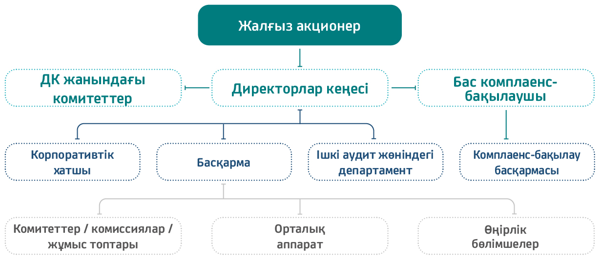 Қазақстан Республикасының заңнамасына сәйкес Банктің ұйымдастырушылық құрылымы келесі басқарушы органдардан тұрады: