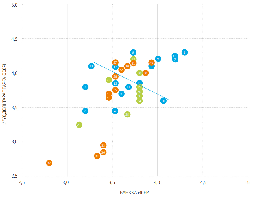Маңыздылықты бағалау нәтижелері матрица түрінде ұсынылған. Төмендегі кестеде сұр түспен көрсетілген тақырыптар Банк пен мүдделі тараптар үшін ең маңызды болып табылады. Сауалнама нәтижелері бойынша ең маңызды 15 тақырып анықталды, олар 4 балдан жоғары жинады. Осы матрицаның жоғарғы оң жақ бұрышына түскен тақырыптар ең маңызды деп танылды және осы есепте ашылды. Есепте маңызды тақырыптар толық ашылған.