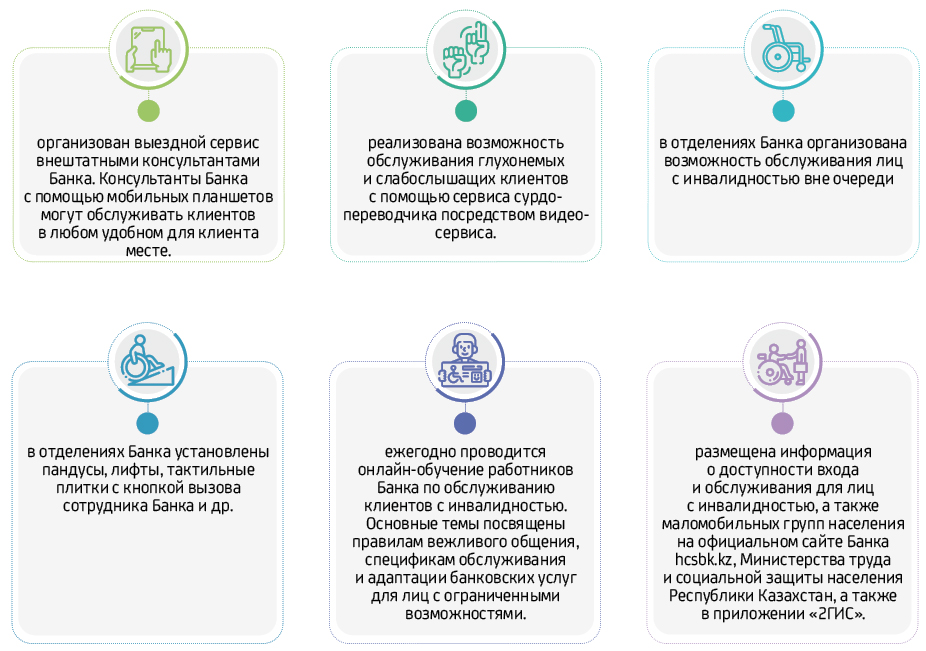 Банком с целью заботы о клиентах, в том числе для маломобильных групп граждан и групп граждан с ограниченными возможностями, созданы следующие условия обслуживания: