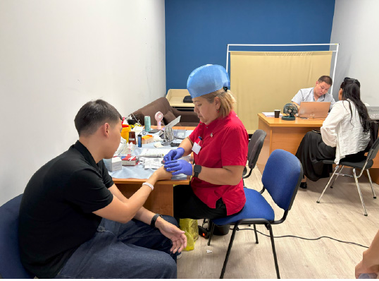 В декабре 2024 года работники Центрального филиала Банка в г. Астана приняли участие в акции по сдачи крови «День Донора», который был организован Холдингом совместно с Республиканским государственным предприятием на праве хозяйственного ведения «Научно-производственный центр трансфузиологии».