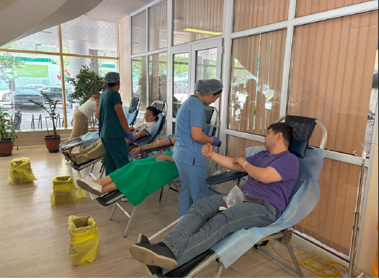 В июне 2024 года в Центральном аппарате Банка совместно с Центром крови города Алматы была проведена акция «День Донора», в результате которой было собрано 36 литров крови для решения проблемы дефицита донорской крови детей с онкогематологическими заболеваниями.