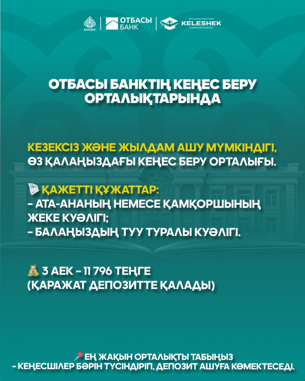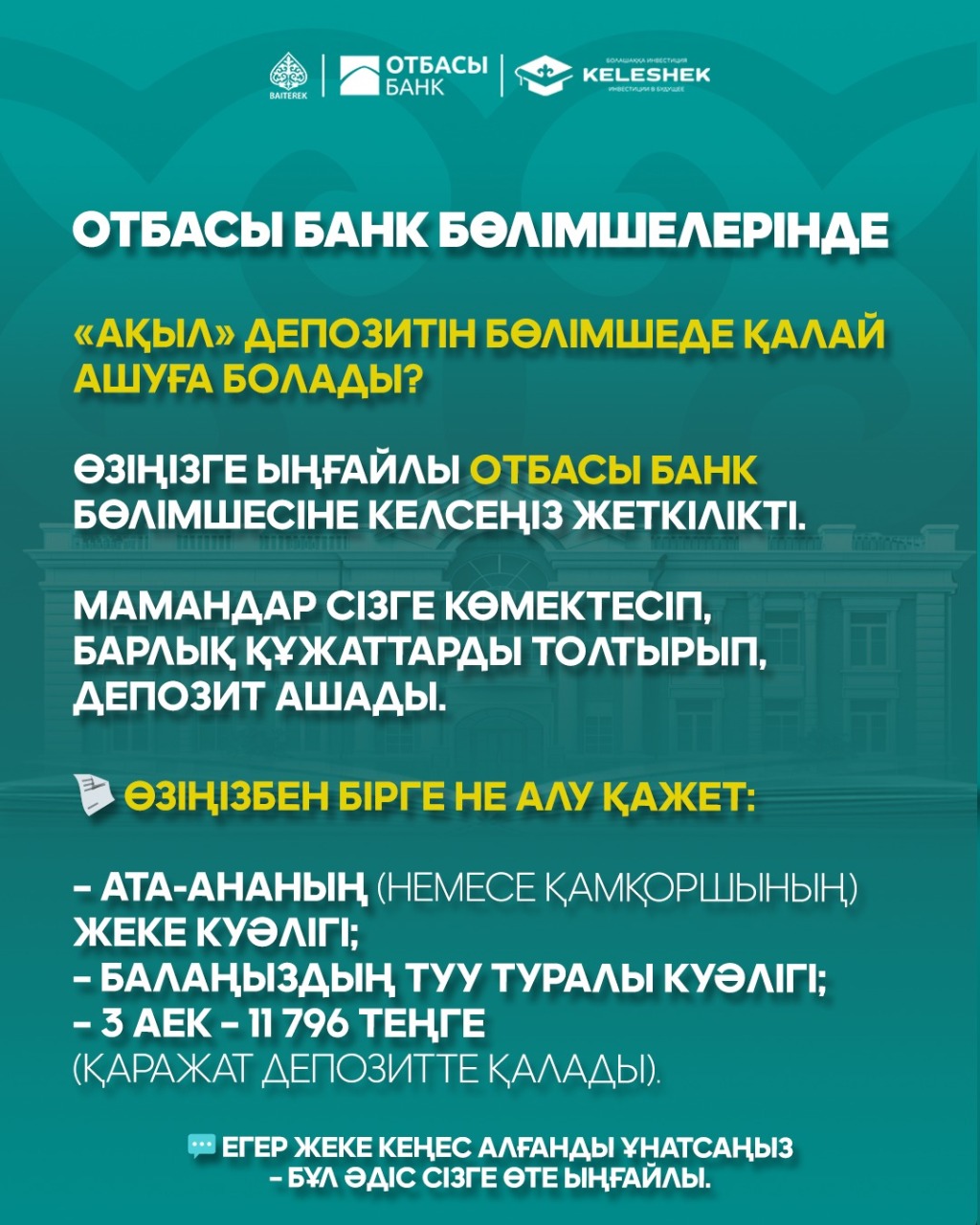 Депозит ашу үшін кеңесшіні шақырыңыз