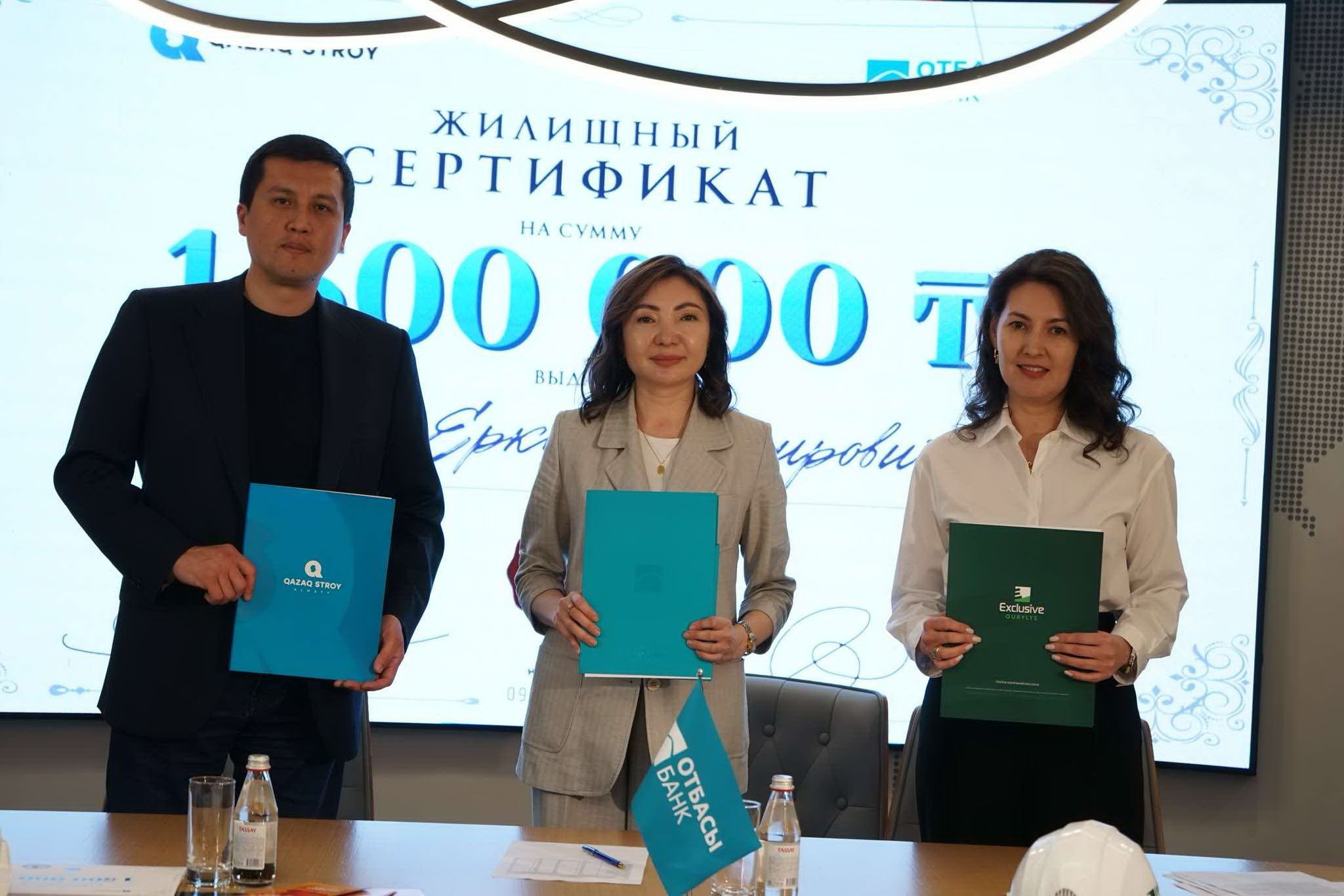 Тараптар Отбасы банкінің клиенттеріне құрылыс салушыдан номиналы 1,5 млн теңге болатын тұрғын үй сертификаттарын алуға мүмкіндік беретін меморандумға қол қойды. Барлығы 1000 сертификат бөлінеді. Олардың Qazaq Stroy және Exclusive Qurylys компаниялары салған тұрғын үй кешендеріндегі пәтерлерді таңдайтын банк клиенттеріне арналған.