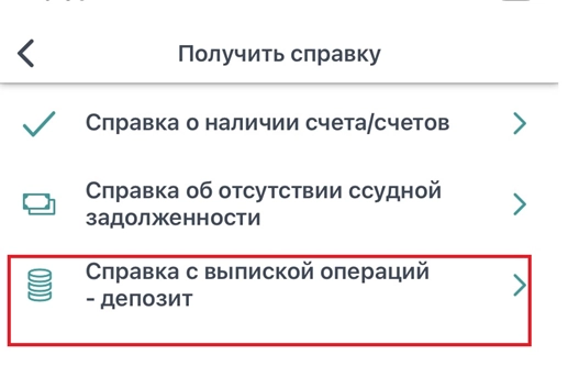 3) Выбираете необходимую справку Справка с выпиской операций – депозит/ Справка с выпиской операций – займ