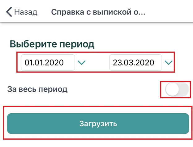 5) Выписку можно получить на указанный Вами период или выбрать «За весь период». Нажимаете кнопку «Загрузить»