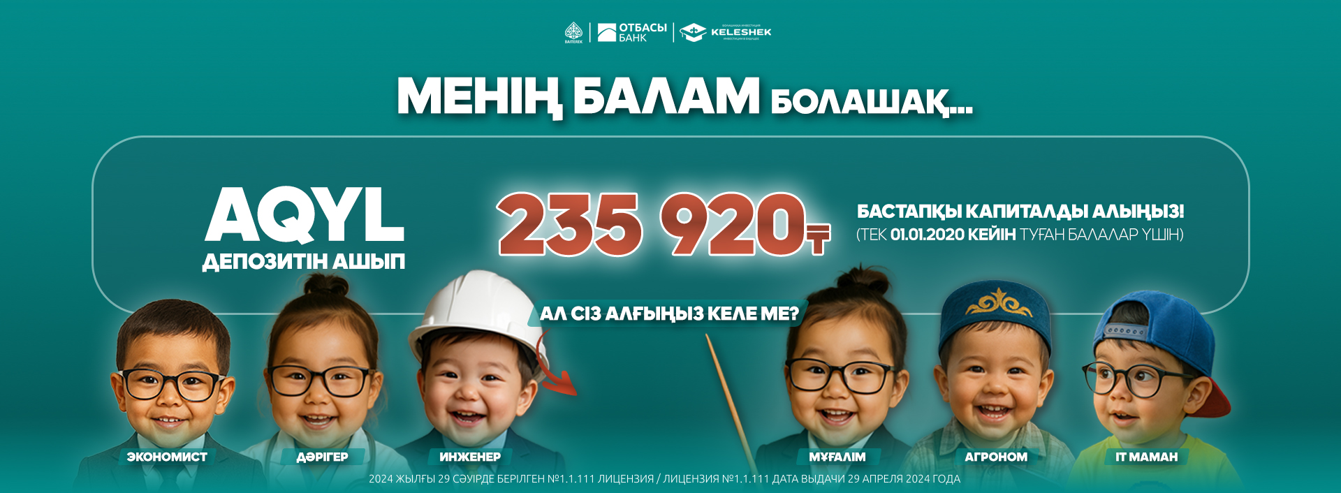 Бұл Қазақстан республикасының кез келген азаматы үшін болашақта өз атына немесе баласының атына елімізде және шетелде кәсіптік-техникалық және жоғары білім ақысын төлеу үшін пайдалануға болатын білім беру жинақтау салымын ашудың тиімді мүмкіндігі.