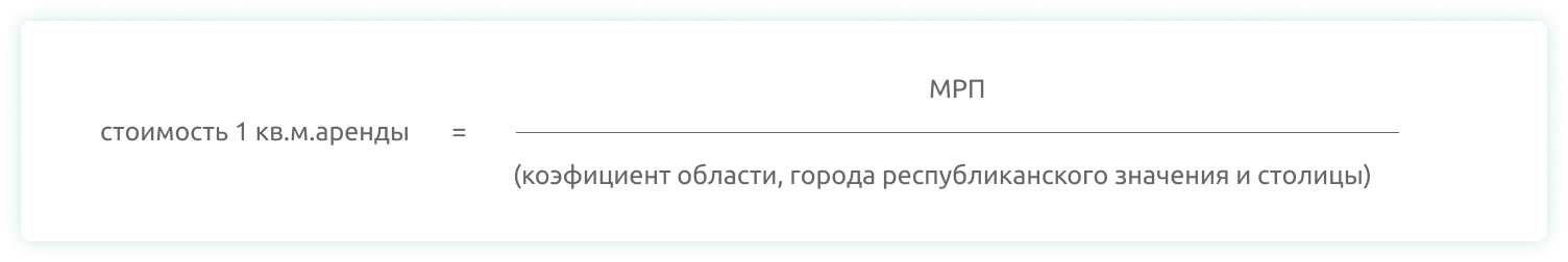 Цена за 1 кв. метр аренды жилья формируется на основе ежегодного уровня МРП и определенного коэффициента области или города.