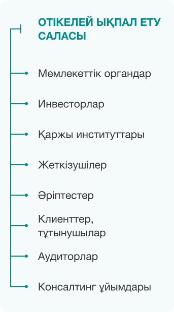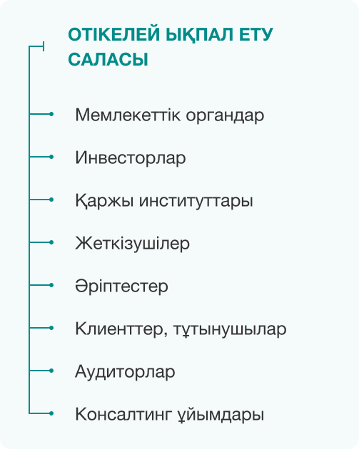Банк әсер ету аймағына байланысты мүдделі тараптардың үш тобын анықтайды: өкілеттік және жауапкершілік аймағы, тікелей әсер ету аймағы, жанама әсер ету аймағы.